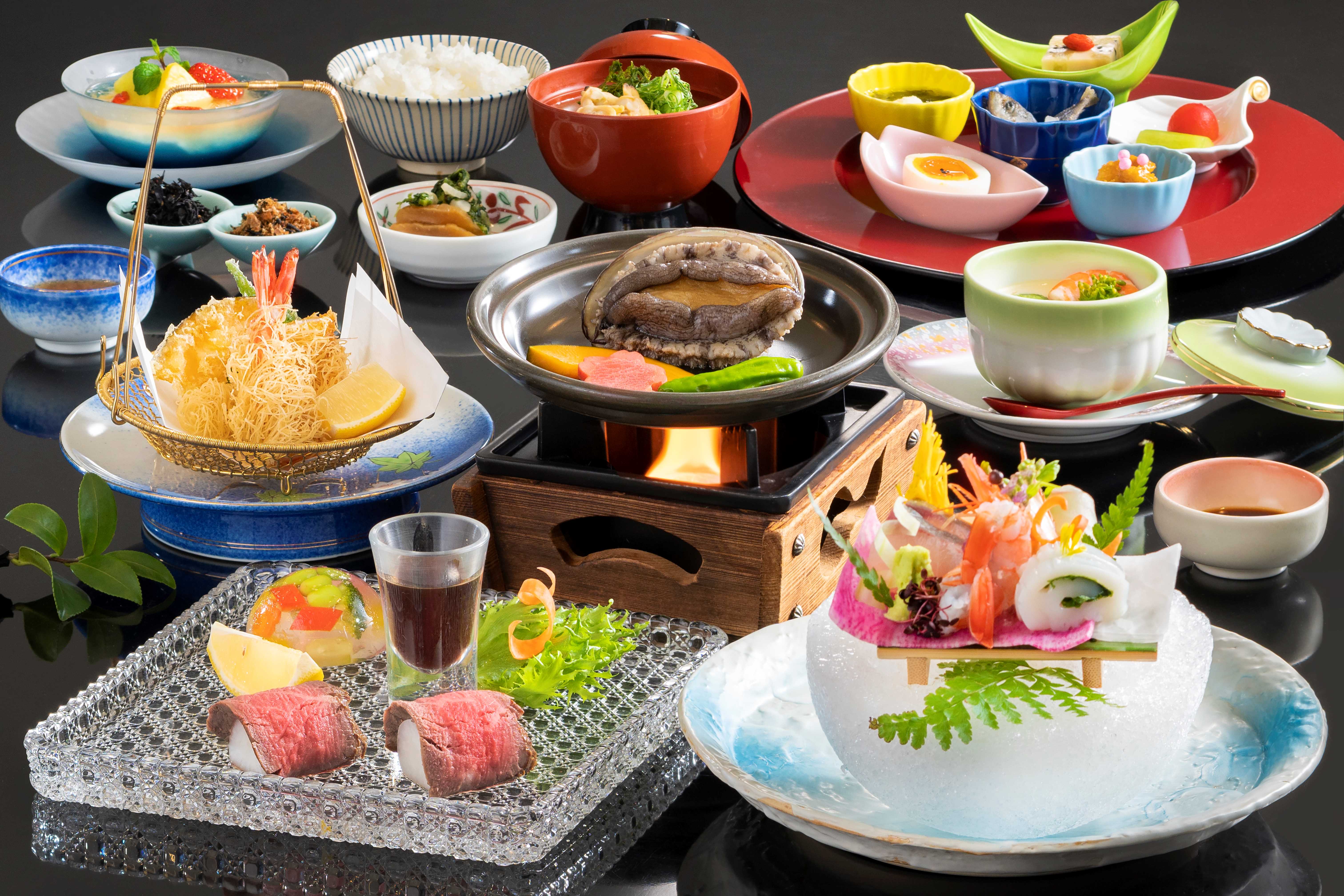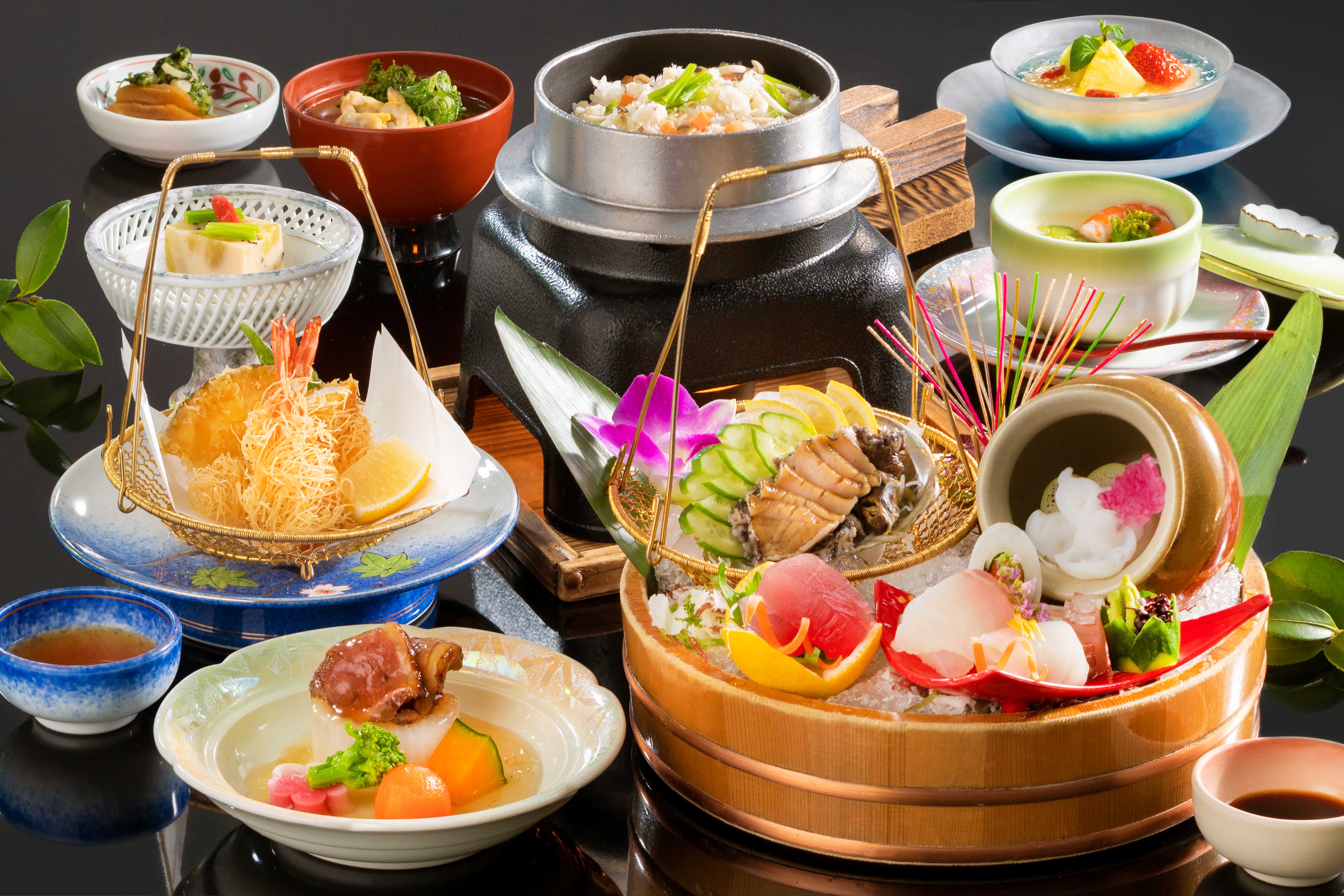 海の幸中心の彩り豊かな月替わりのお料理と天然温泉でのご入浴をお楽しみください。